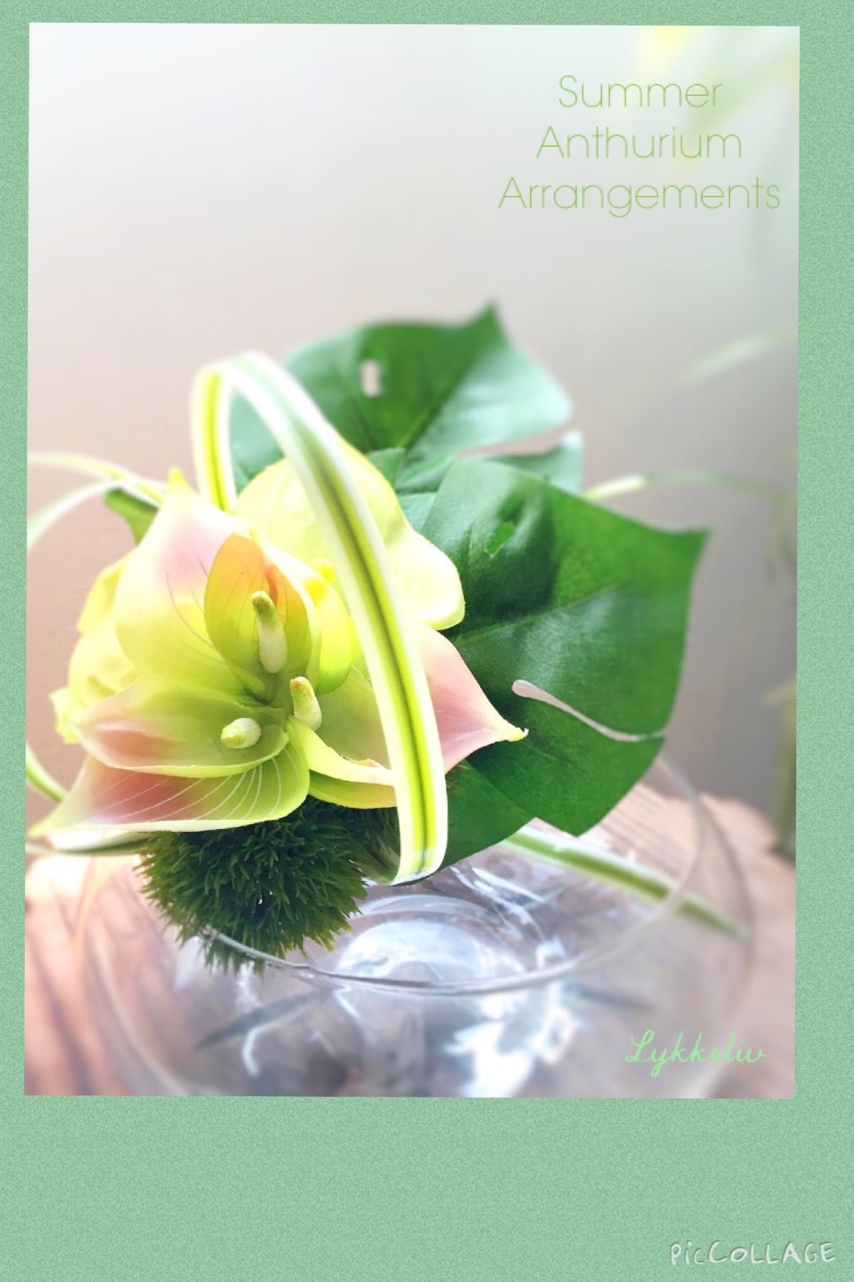 涼しげなガラスの器に夏の花であるアンスリウムやモンステラをアレンジしました。