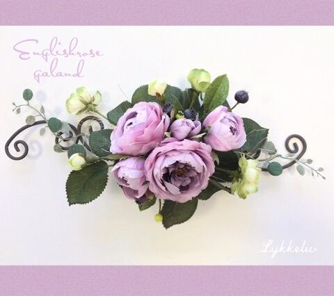 上品なパープルのイングリッシュローズを使用したアーティフィシャルフラワーガーランドです。